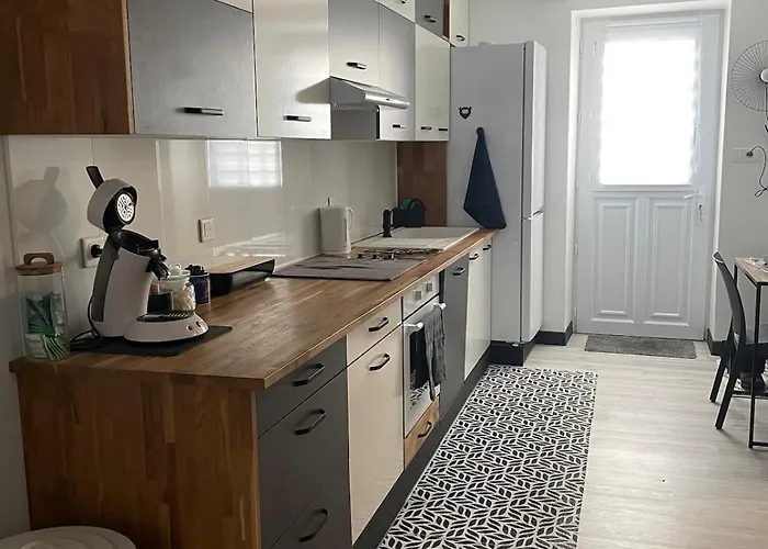 The kitchen amenities at Maison Une Chambre feature an oven and a dishwasher, provided in an outdoor dining area. The nearest bus stop, Le Bon Tour, is merely 10 minutes' stroll away.